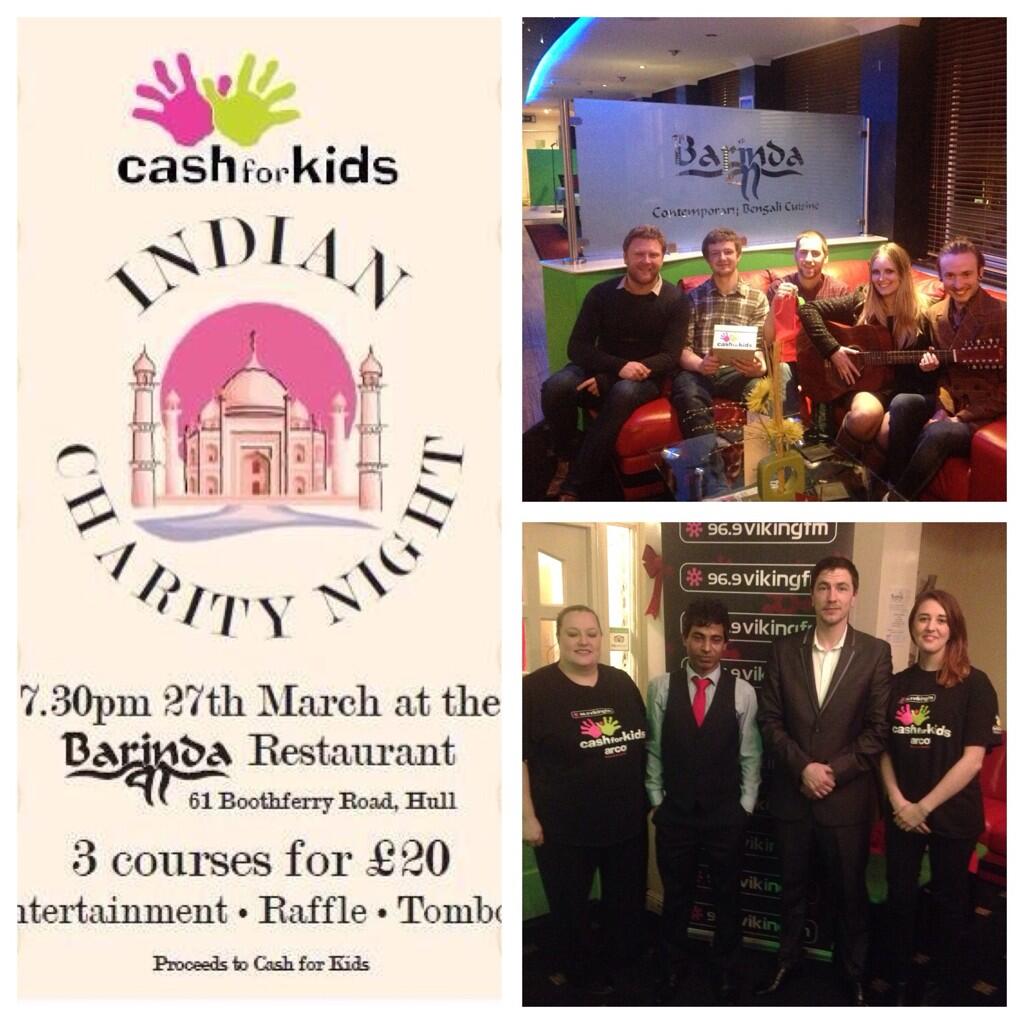 Barinda Restaurant (Boothferry Road, Hull) opened their doors to the Cash for Kids team Thursday 27th March for a night of fundraising, enabling us to raise over £400 for the charity.